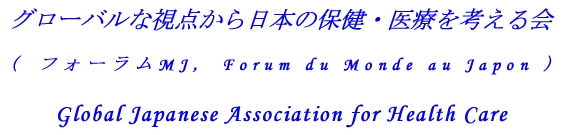 グローバルな視点から日本の保健・医療を考える会(フォーラムMJ:FMJ)は、主にアメリカを中心とした国際的な視点から、保健・医療 における広い範囲の話題について語り合うグループです。さまざまな経験と知識を持ち寄り、海外の現状を日本の現状と比較しながら、会員個人と、さらに、それを日本の保健・医療のレベルア ップに結び付けて行きたいという趣旨で作られました。